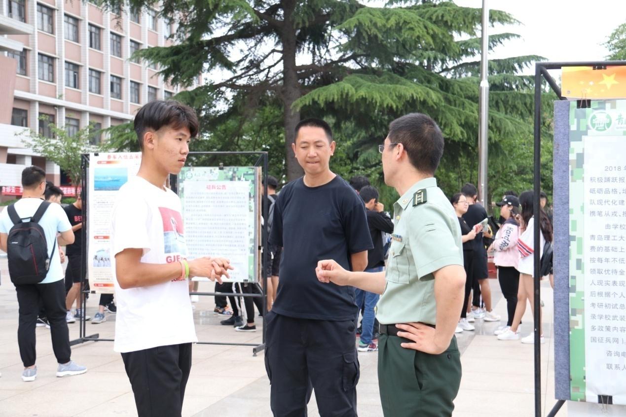 征兵咨询现场,市北区人武部领导从入伍条件、参军流程、入伍优待等方面详细解读了参军入伍的相关政策,把最新的征兵政策送进校园,鼓励学生们投笔从戎,激发他们参军报国、建功军营的热情。活动吸引了近300名学生前来咨询,现场报名25人。