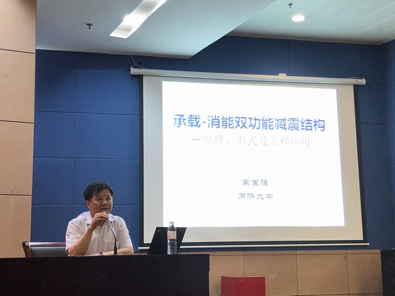 李国强教授的讲座题为“承载-消能双功能减震结构原理、形式及应用”,其科研团队历时25年发明了消能-承载双功能构件及其高性能减震结构,并率先实现规模化工程应用。李教授通过众多工程实例,对目前已有的和正在研发的承载-消能双功能减震结构的原理、形式和应用进行了详细的讲解。