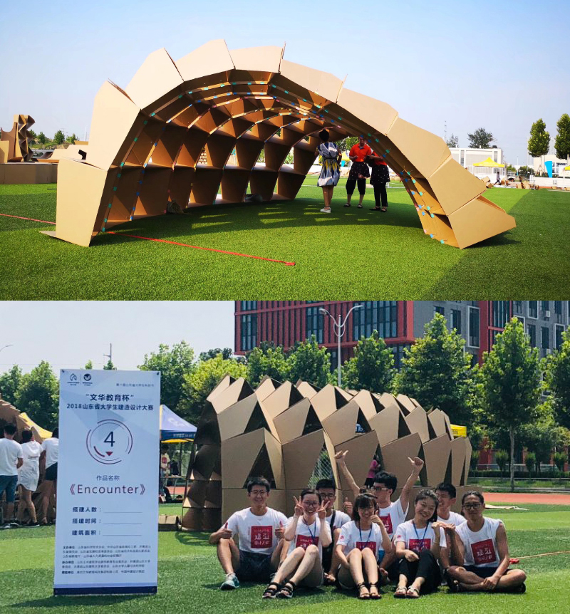 近日,第十届山东省大学生科技节“文华教育杯”2018山东省大学生建造设计大赛圆满落幕,由程然老师指导,建筑学专业学生史鸿雁、葛力铭、唐嘉忻、江源、于洋、刘仰通、孙欣阳、范浩然同学参与的团队作品《Encounter》获大赛二等奖,由聂彤、徐翀老师指导,姜松、田欣然、吕航、郭玉娇、傅钰斐、刁紫芩、王馨月、郭子楚、石兆祥同学参与的团队作品《陋室》获大赛三等奖。