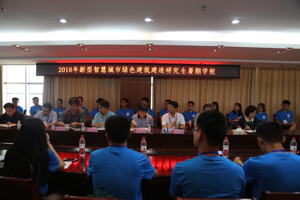 于德湖在致辞中介绍了举办新型智慧城市绿色建筑建造研究生暑期学校的目的、课程内容以及学习方式,希望学员们珍惜这次难得的机会,认真聆听专家的报告,在与专家及同学们的相互交流与切磋中开阔学术视野,拓宽科研思路,同时收获友谊。苗吉军介绍了学校的基本情况以及土木工程学院近年来改革发展取得的成绩。