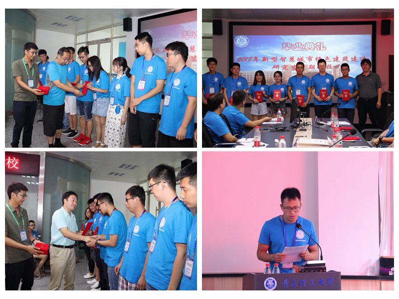 参加此次暑期学校的学员来自不同高校,科研方向各不相同。培训过程中,所有学员被分成8个小组,在一周时间里,白天听专家老师们的报告,晚上进行分小组讨论交流,通过小组内讨论的方式,彼此开阔了科研视野,拓展了科研思路。结业考核时,每个小组围绕“新型智慧城市绿色建筑建造”主题,充分利用一周时间学到的知识及各自的专业背景准备答辩材料、大家积极发挥团队合作精神,制作PPT答辩材料并选派代表进行汇报,各位专家老师进行了专业评审。结业考核后,学校为各位学员颁发了结业证书。