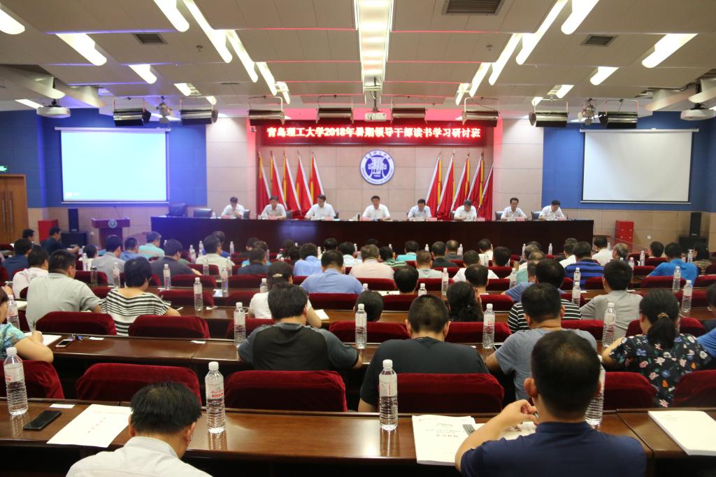 8月20日,学校2018年暑期领导干部读书学习研讨班开班,党委书记王亚军、校长谭秀森等学校全体领导出席会议,全校处科级干部分别在市北校区主会场、嘉陵江路校区和临沂校区分会场,通过现场听讲、网络直播形式共同参加学习,研讨班采取个人自学、专家辅导、讨论交流相结合的形式进行。学习研讨班由党委副书记张殿恒主持。