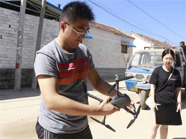 团队成员为村庄进行航拍影像拍摄