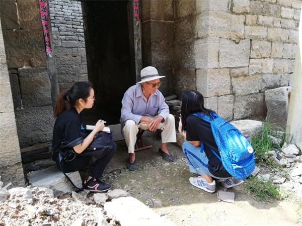 队员们还与村民们进行了深度交谈,热情邀请村民们协助填写调查问卷,询问了他们的居住史和他们对村落环境的发展看法,同学们与每一位村民交谈时都极富耐心,注重礼貌,尽量把对村民们来说晦涩难懂的专业问题转化成简单的口头描述,使得村民们能够准确地回答出调研所需的相关答案。在调研过程中,队员们也遇到了家中存有族谱的老人和其他对村落格外了解的村民,他们给队员讲述了许多问卷无涉及的问题,丰富了调研的内容。