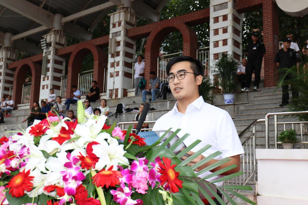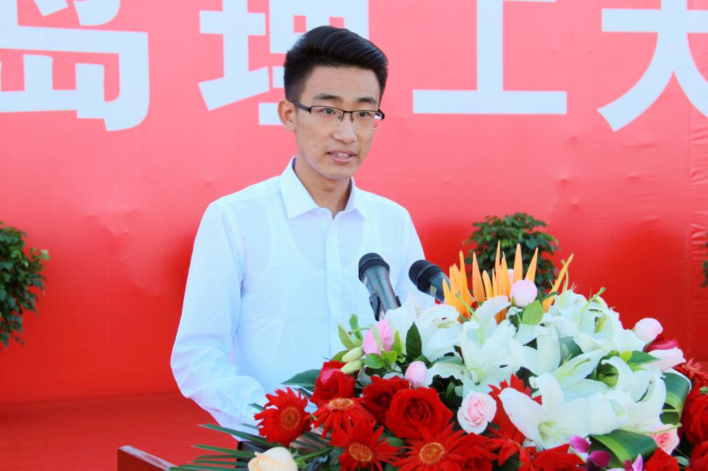 在校生代表、环境与市政工程学院建筑环境与能源应用工程专业2015级1班王枰力同学,信息与控制工程学院网络工程专业2016级1班鞠明轩同学,机电工程系机械设计制造及其自动化专业2016级2班张大伟同学在发言中分享了自己在大学校园的收获与感悟,表示在大学这个全新的“起跑线”上,我们要明确目标、励志勤学、知行合一、注重实践,祝福学弟学妹们大学期间生活充实、学有所成。