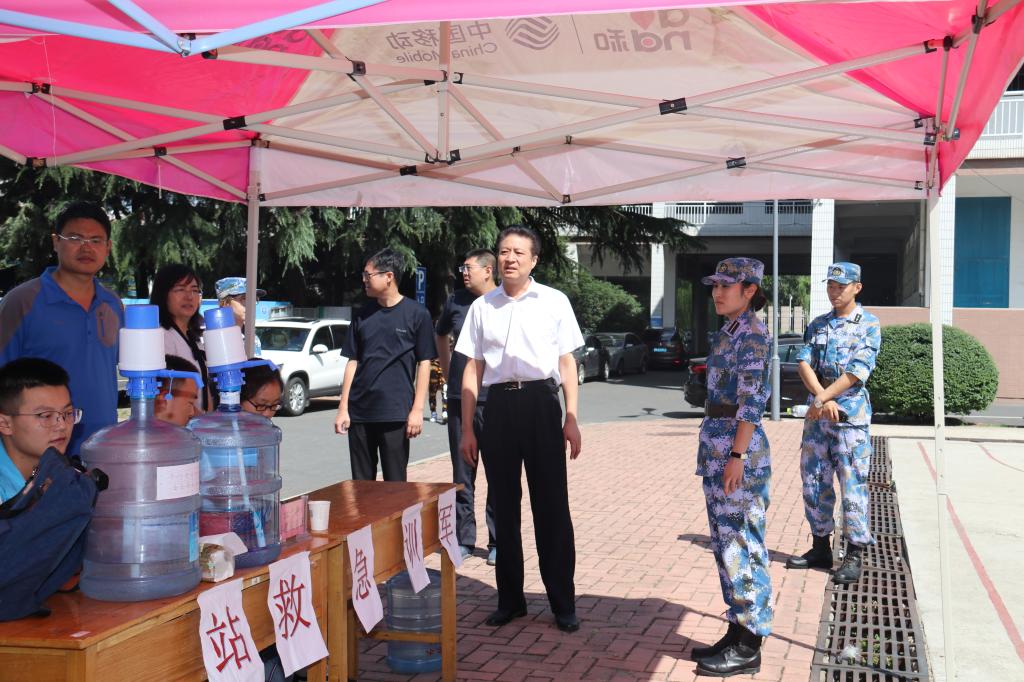 训练场上,张殿恒观看了新生的队列训练科目,听取了部队领导的军训进展情况汇报。同时,和现场校医院老师、各学院辅导员老师及班级助理同学进行了详细交流。