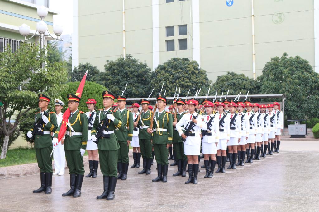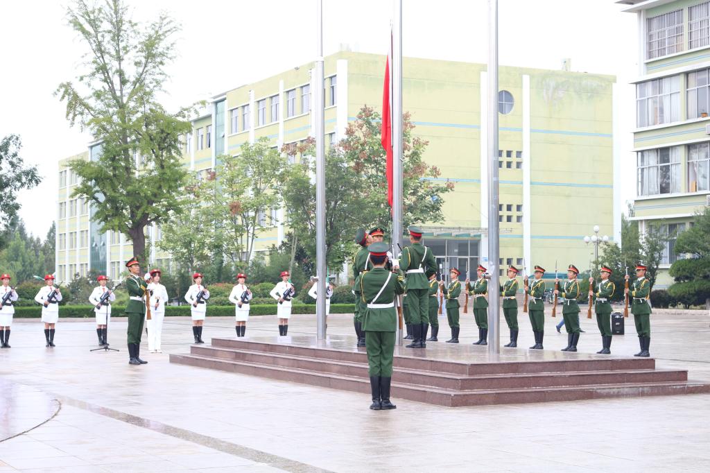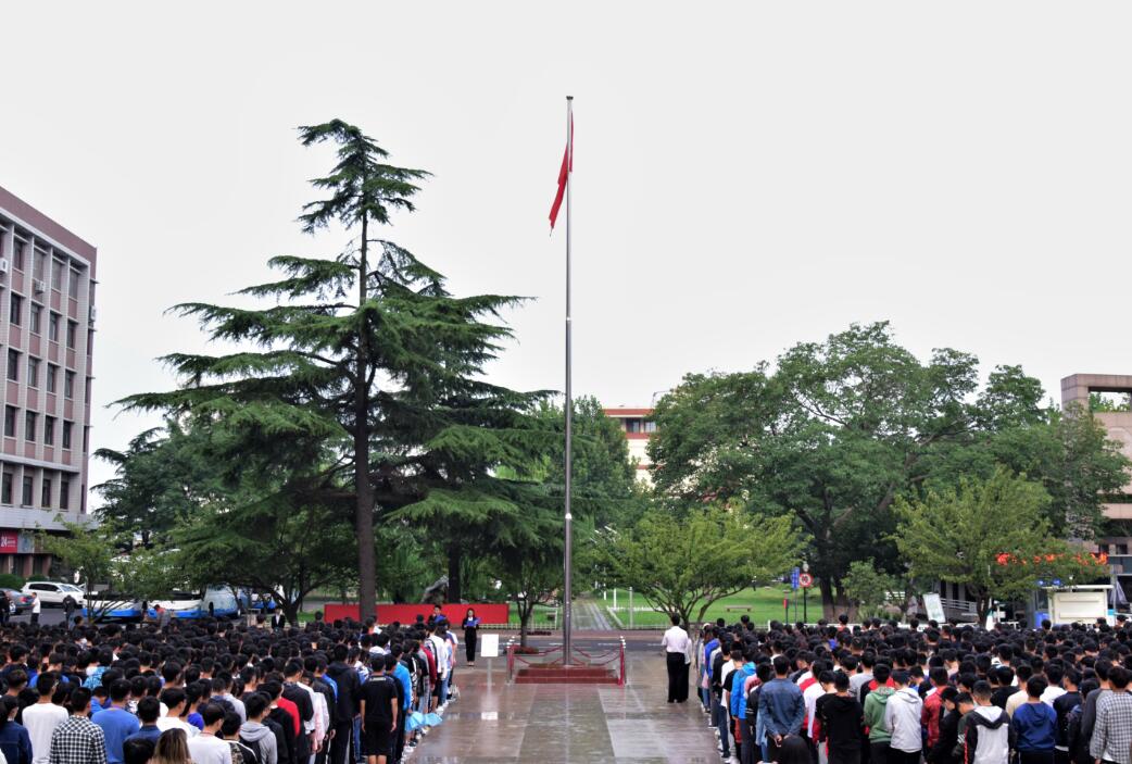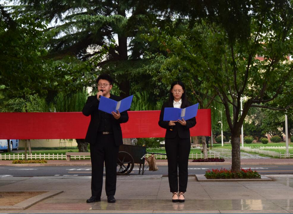 早6:30,身姿挺拔的国旗护卫队队员踏着整齐的步伐,护送国旗抵达升旗台。伴随着雄壮激昂的国歌声,五星红旗冉冉升起,迎风飘扬。全体师生庄严肃穆,齐唱国歌。在市北校区、临沂校区,主持人介绍了“九一八”事变,学生代表的朗诵带领师生们重温了八十七年前那段国家满目疮痍、支离破碎的的历史,让大家加倍珍惜当下幸福生活来之不易,更加坚定信心和意志开创美好未来。黄岛校区各学院学生代表发言,带领大家共同回顾了“九一八”事变的历史和革命先烈艰苦卓绝的抗战,表达了全体新生铭记历史,警钟长鸣和奋发图强、报效祖国的坚定决心。