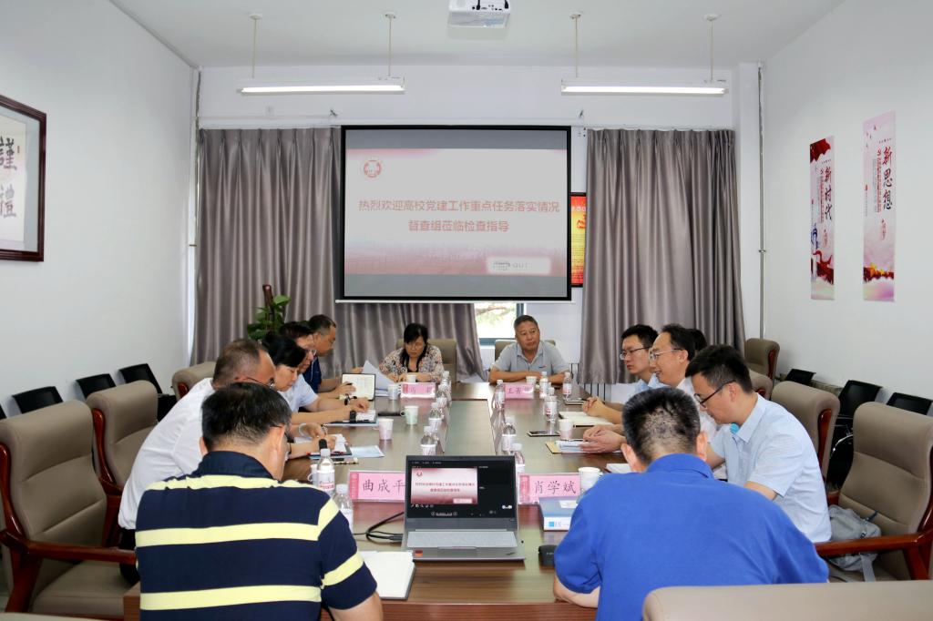 9月18日上午,省委组织部、省委教育工委高校党建工作重点任务落实情况督察组一行三人,在省委教育工委学校组织处二级调研员徐文元带领下来伟德官网检查指导工作,市委教育工委思政处负责同志陪同检查。党委常委、纪委书记尹东峰主持汇报会并致辞,党委办公室、党委统战部、纪委监察处、党委组织部、党委宣传部、党委教师工作部等部门负责同志参加汇报会。