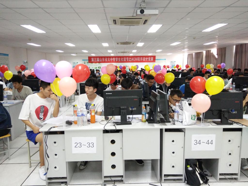 9月23日,由中共山东省委教育工委、共青团山东省委、山东省文化厅、山东广播电视台、山东省学生联合会主办,校团委、信息与控制工程学院承办的“第三届山东省大中专学生社团节ACM程序设计大赛在伟德官网顺利举行。来自省内11所高等院校的65支队伍共195名学生参加了竞赛,竞赛规模创下新高。经过激烈角逐,3支队伍获得金奖、7支队伍获得银奖、10支队伍获得铜奖。为承办好此次比赛,信息与控制工程学院召开了各科室的协调会,实验室老师负责比赛机器的保障工作、教练组负责组织出题及现场答疑、学生工作老师负责赛事组织,三方互相沟通、协力保障比赛的顺利举行。