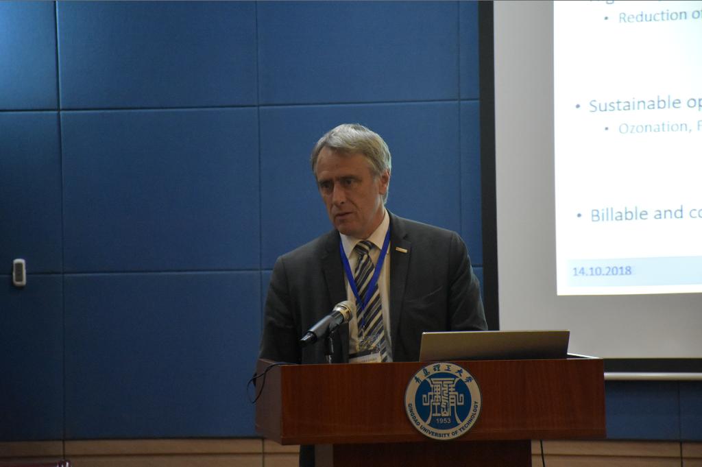 本次会议共组织30场报告,充分展示了两校在土木建筑、环境保护、新型材料上的研究成果,会场气氛热烈、提问环节踊跃,参会教授和同学们的交流为两校今后的研究提供了新思路。10月14日下午,德国马格德堡市副市长Rainer Fnitsche先生在于德湖副校长陪同下参加会议并发表讲话。Rainer Fnitsche先生介绍了马格德堡市的历史与发展状况、对比分析马格德堡市与青岛之间的差异,同时也表达了对第一届国际学生会议召开的肯定和赞赏。