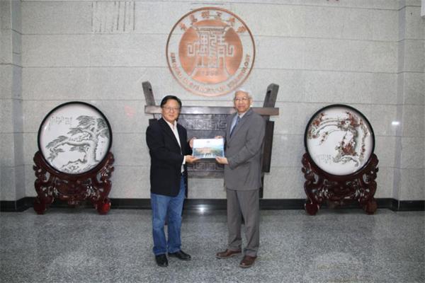 校党委书记王亚军与澳门城市大学校长张曙光互赠纪念品