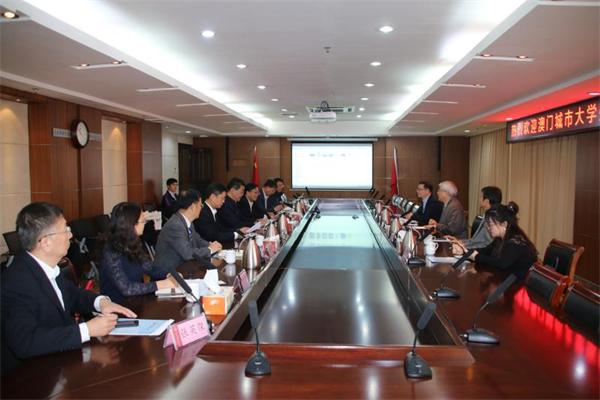 10月16日上午,澳门城市大学校长张曙光、澳门金龙集团总裁吴锡琛等一行4人来校交流,洽谈合作。校党委书记王亚军,日本工程院外籍院士、伟德官网博士生导师高伟俊教授,副校长于德湖出席座谈会,党委办公室、发展规划处、国际交流处、建筑与城乡规划学院、管理工程学院及人文与外国语学院等相关部门、学院负责人陪同座谈。