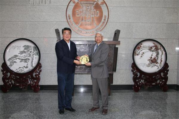 于德湖详细介绍了学校的历史沿革、现状和办学特色。并就城市规划、滨海城市建设、城市文化建设、人文社科等方面的未来合作与张曙光一行进行了深入交流。