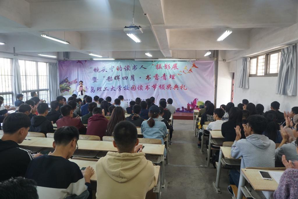 10月17日下午,“镜头中的读书人”摄影展暨“韶晖四月·书香青理”伟德国际1946bv官网读书节颁奖典礼在长江路校区2教举行。黄岛区新华书店董事长韩道坤在典礼上致辞,校工会主席周忠学宣布读书节闭幕,图书馆馆长王斌做总结讲话,人文与外国语学院院长巩湘红宣读获奖名单,图书馆副馆长甘露露主持颁奖典礼。