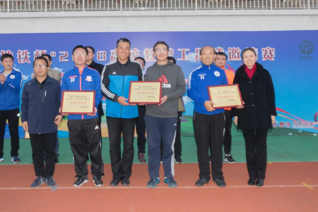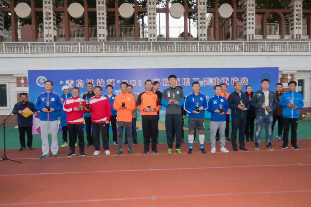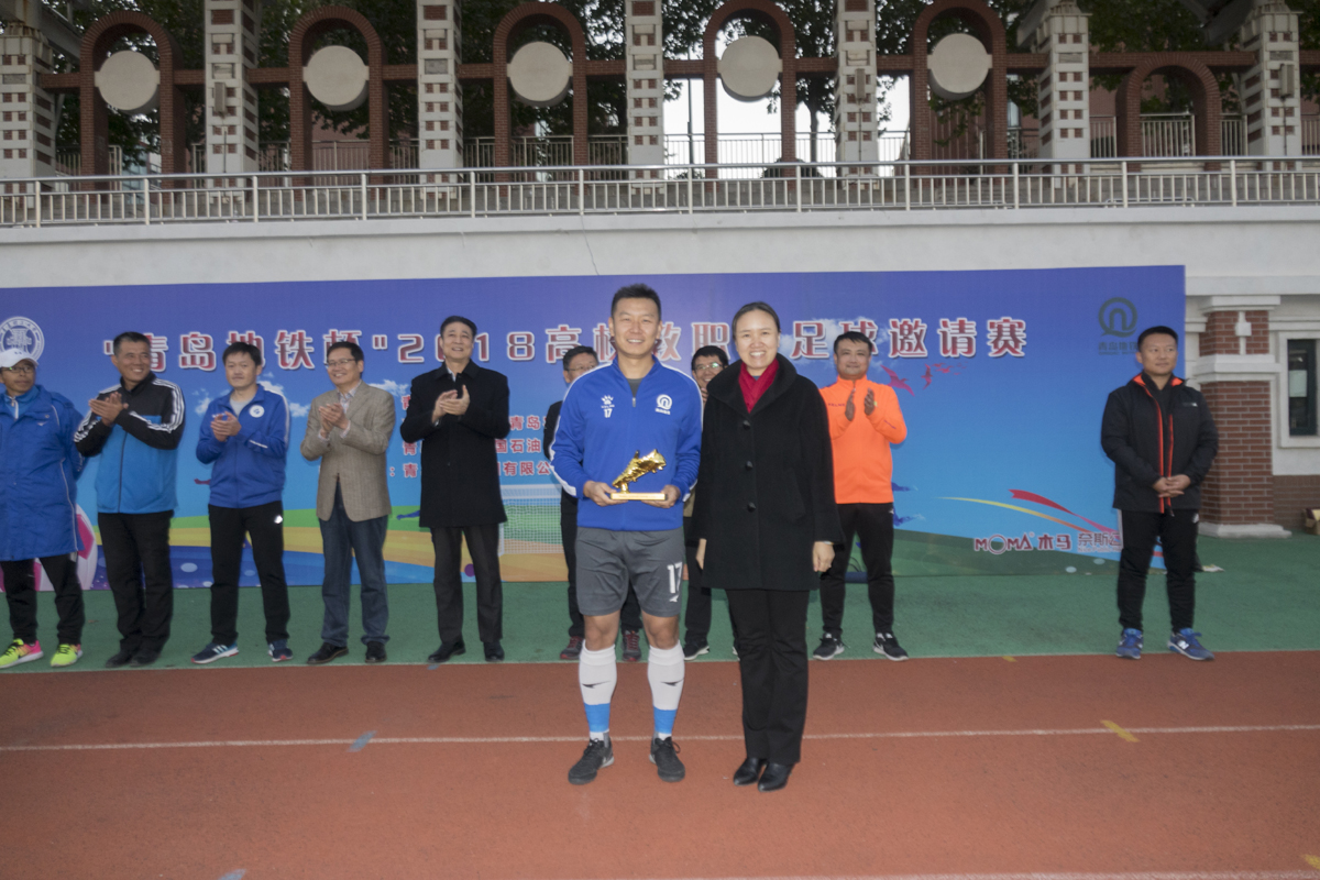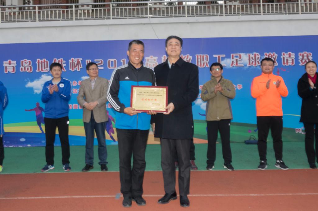 10月27日,“青岛地铁杯”2018高校教职工足球邀请赛在伟德官网嘉陵江路校区闭幕。校党委副书记张殿恒在闭幕式上讲话并宣布比赛闭幕。体育教学部党总支书记张建新主持闭幕式,校工会副主席胡艳芳宣布获奖名单。青岛地铁集团有限公司工会常务副主席张明东、中国石油大学工会主席张军、青岛职业技术学院工会主席孙钢等参加闭幕式并为获奖单位和个人颁奖。