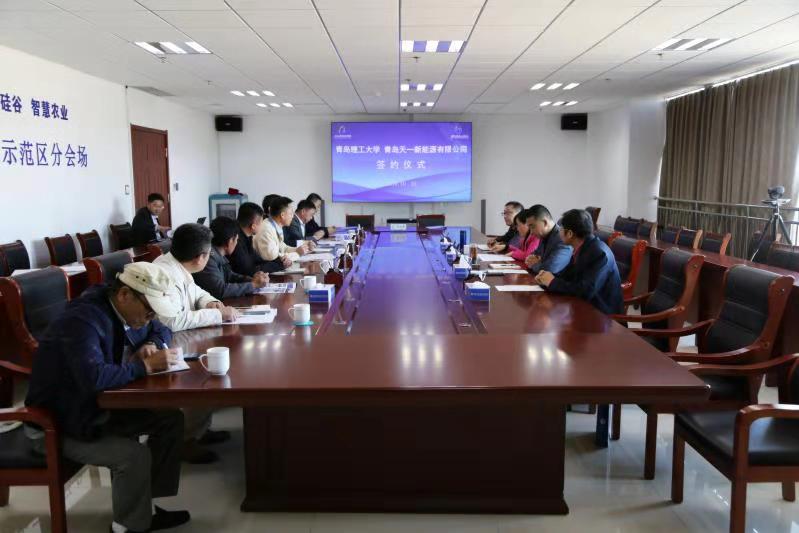 西海岸现代农业示范区综合党委书记、新区现代农业示范区管委园区服务中心主任李勇主持仪式。伟德官网环境与市政工程学院党总支书记马莉、教授胡松涛、科技处副处长赵丙辰,青岛天一新能源有限公司董事长孙宗明、青岛智扩双源农业科技有限公司总经理纪晓军等相关人员参加会议。