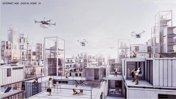 由王润生、王少飞老师指导,建筑学专业本科生董敬哲、王汉鹏、孙弘开、吴田昊凭借有创意并贴合设计要求的作品《互联网时代—数字化住宅》获得优秀奖。获奖作品的设计理念是21世纪是数字时代和大数据时代的开始,这也是一个行业细分的时代。作为这个时代的土壤,数据正在创造一个高维度,虚拟和乌托邦的世界,计算机、互联网、数据是建立虚拟社会的根本。作品创造了一种新的生活方式,随着时间的变迁,富有活力的创客们推动城市的发展,而城市的发展新征程要求“创客之城”继续生长,在充分利用了青岛区位的情况下最终我们的城市乃至世界,将会因这个现实空间与虚拟空间相结合的“创客之城”而更加精彩。
