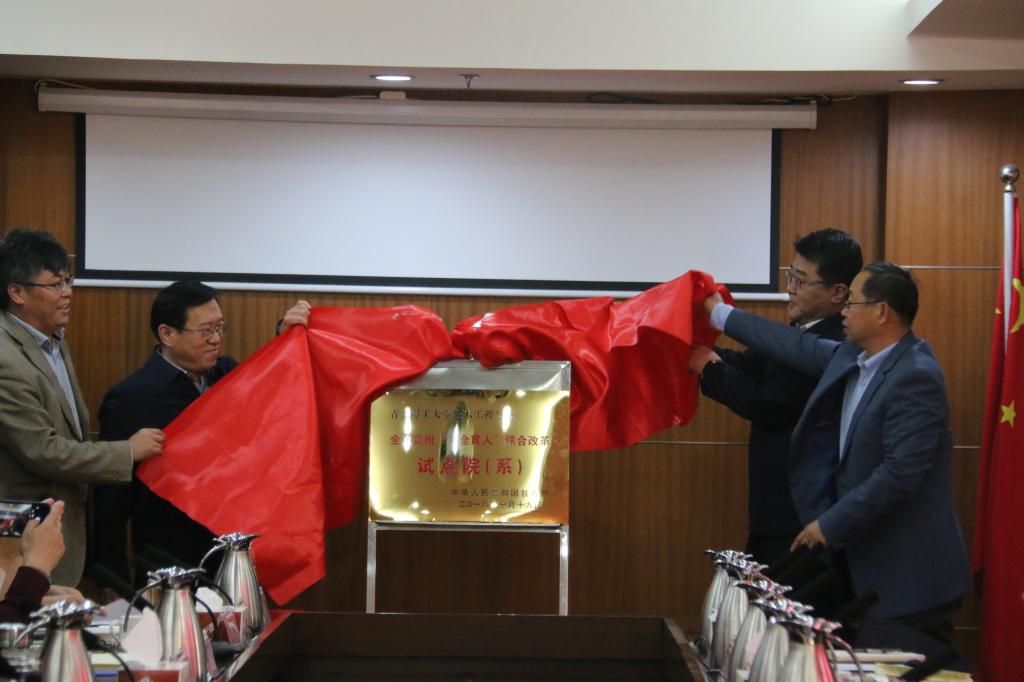 会上,张殿恒宣读《教育部办公厅关于公布首批“三全育人”综合改革试点单位名单的通知》;党委书记王亚军、校长谭秀森、土木工程学院党总支书记曲成平、土木工程学院院长苗吉军共同为“三全育人”综合改革试点单位揭牌。