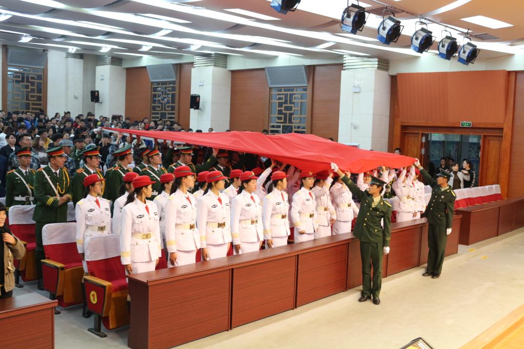 11月15日下午,首任天安门国旗班班长董立敢应邀来伟德官网临沂校区指导国旗护卫队建设工作,并开展“国旗在我心中”爱国主义教育主题活动。临沂校区党委常务副书记李国涛出席报告会,校区学生工作部副主任、团委书记、武装部副主任刘宗庆主持,校区学生工作部相关负责同志、国旗护卫队成员、学生党员和入党积极分子600余人参加报告会。