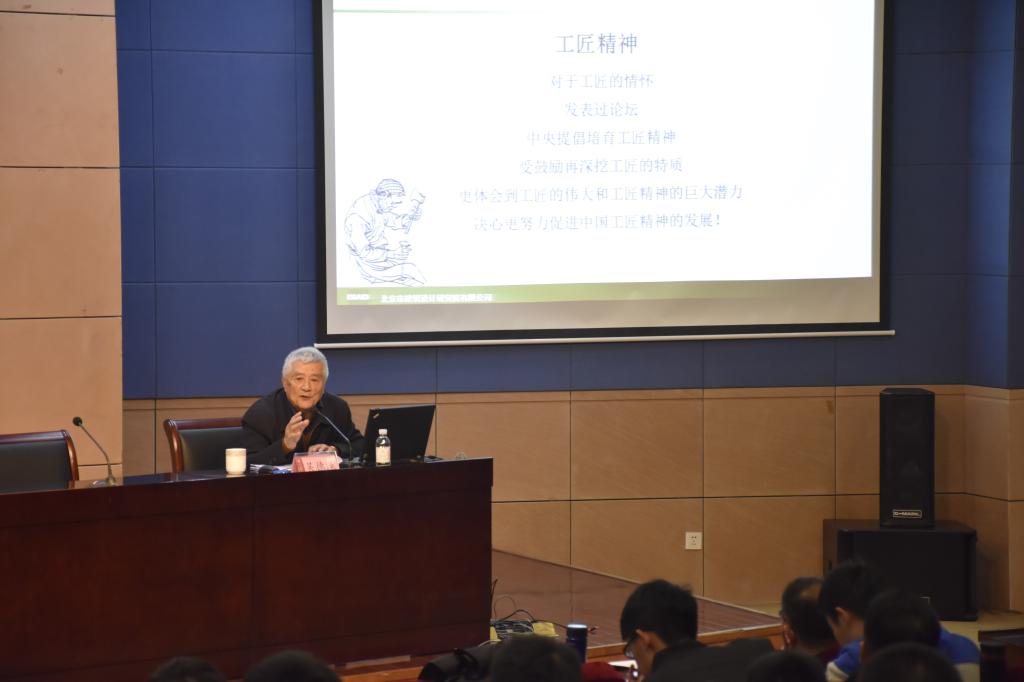 然后,吴德绳教授在学术报告厅作了题为《为中华民族的伟大复兴努力学习和挖掘大国工匠精神》的报告。环境与市政工程学院胡松涛教授主持报告会,环境与市政工程学院相关老师、研究生和本科生近300人聆听了这场精彩纷呈的报告。