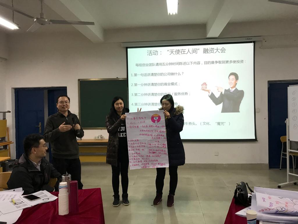培训期间,学员与授课教师就知识的掌握更新、思维方法的形成培养、教师角色的定位和作用发挥、课程的教授组织等方面进行进一步的交流探讨;学员之间也在知识学习、团队建设、生存体验、项目路演等环节积极分工合作,不断突破碰撞思路,互动交流集思广益,在有限的培训时间中挖掘无限发展的潜能和创意。培训学员掌握完整的创业指导体系,建立以创新为基础的创业理念,掌握创业授课和创业导师的技能技巧,成为课程讲授与创业指导双重专家。