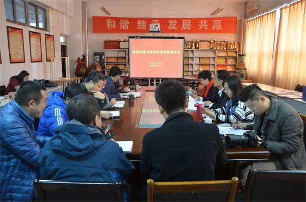 齐德义认真听取汇报后,对一年来学院取得的成绩给予充分肯定,并对学院下一步党建工作提出要求:一是学院党总支进一步发挥好政治核心作用,党支部发挥好战斗堡垒作用,党员发挥好先锋模范作用,落实好校党委党建工作各项要求;二是牢固树立“党建+”理念,对标“双一流”建设及内涵式发展要求,积极推进综合改革,做好首次岗位聘任聘期考核和新一轮岗位聘任工作;三是进一步完善“三全育人”格局,做好期末的安全稳定、学生教育与管理等相关工作,及早谋划明年工作思路。
