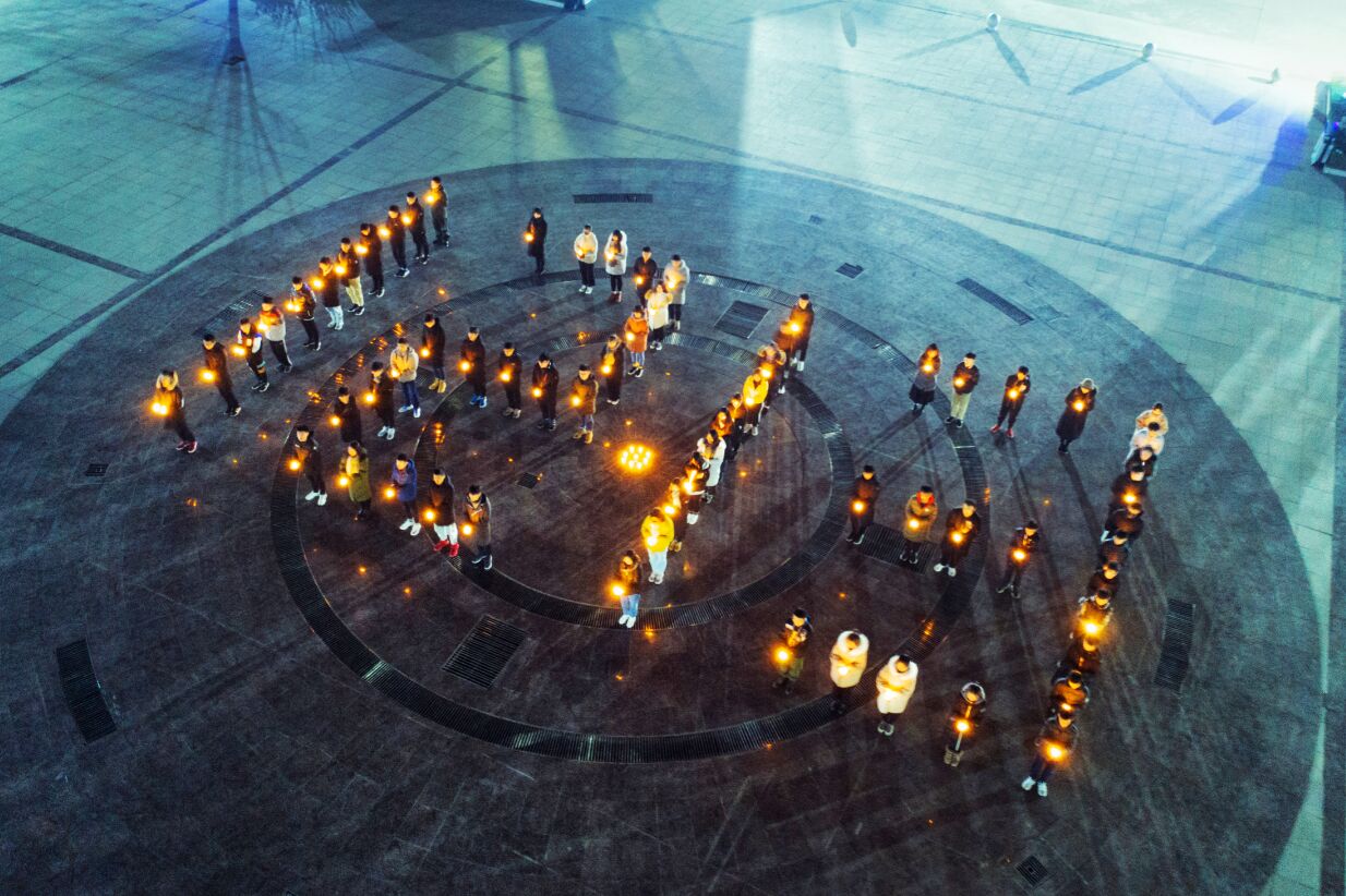 晚上18:00,校区100余名学子自发在办公楼喷泉广场用蜡烛摆出“12.13”,用烛光祭的方式,表达了对81年前那段历史之殇的追思和民族之痛的铭记。