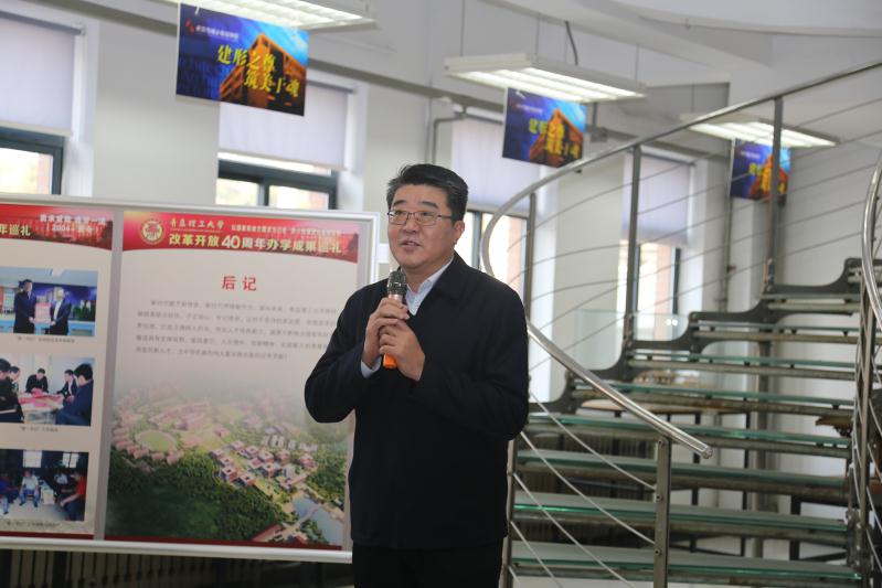 校党委书记王亚军出席开展仪式并讲话,学校党政领导、各部门各学院负责人、师生代表等共同参观了展览。