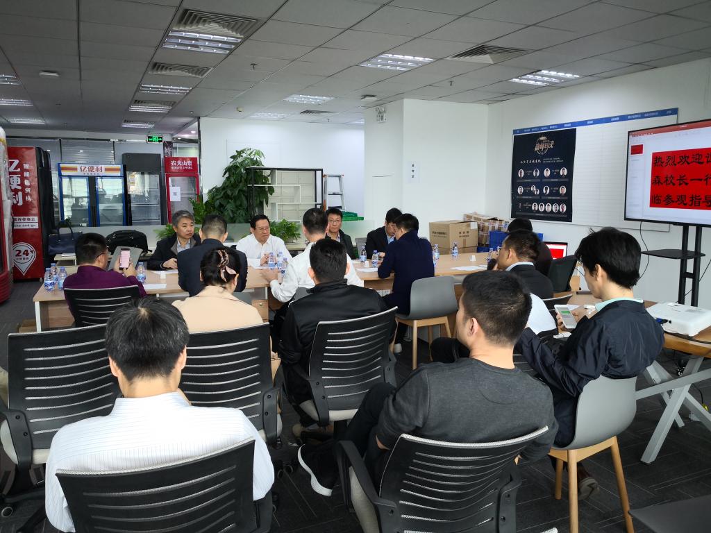 12月20日上午,校长谭秀森一行五人来到深圳市南山区迈科龙大厦走访看望深圳校友,并与校友们亲切座谈。