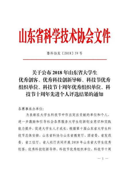 第十届山东省大学生科技节由山东省科协、省教育厅、团省委、省发改委、省经信委和省人社厅联合主办,信息与控制工程学院先后组织学生参加了山东省软件设计大赛、山东省网络技术大赛、山东省机器人大赛、山东省大学生电子与信息技术应用大赛、山东省大学生ACM大赛和山东省大学生智能技术应用设计大赛等6项赛事,取得了一等奖24项、二等奖20项和三等奖21项的好成绩。在山东省大学生优秀科技社团、优秀科技社团干部评选中,信息与控制工程学院网络协会获评省级优秀科技社团、张钢和姜龙云获评优秀科技社团干部。另外,还承办了山东省大学生机器人大赛、山东省网络技术大赛(初赛)。大学生科技节旨在在高校学生中营造热爱科学、勇于创新、敢于竞争的氛围,提升大学生综合素质、创新创业意识和能力,促进大学生创新创业和人才成长。各项赛事不仅为大学生提供了一个学术交流的平台,为参赛选手提供了一个理论与实践相结合的机会,同时加强了省内高校之间的交流与合作,对于培养大学生的创新能力,推动科技成果向现实生产力转化以及大学生就业创业活动具有十分重要的意义。