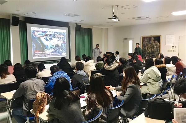 在第一天的课程中,一行人前往北九州市立大学国际环境工学部,开展了课程说明报告会暨欢迎仪式,报告由山下俊郎先生主讲。报告会上,山下先生首先介绍了北九州的基本情况以及地域划分,之后,他分别针对北九州市的环境政策、环境的发展对策史、主要的环境问题等展开了细致的讲解,他表达了日本建立循环型社会的美好愿望,希望与会师生也能保护环境,为世界环境献上自己的一份力量。报告会后,一行人还去往ECO-TWON进行学习参观,深入感受了北九州市的环境事业发展。