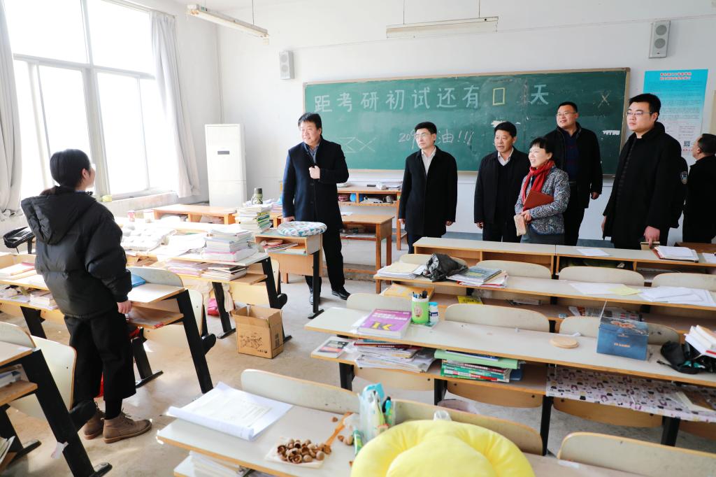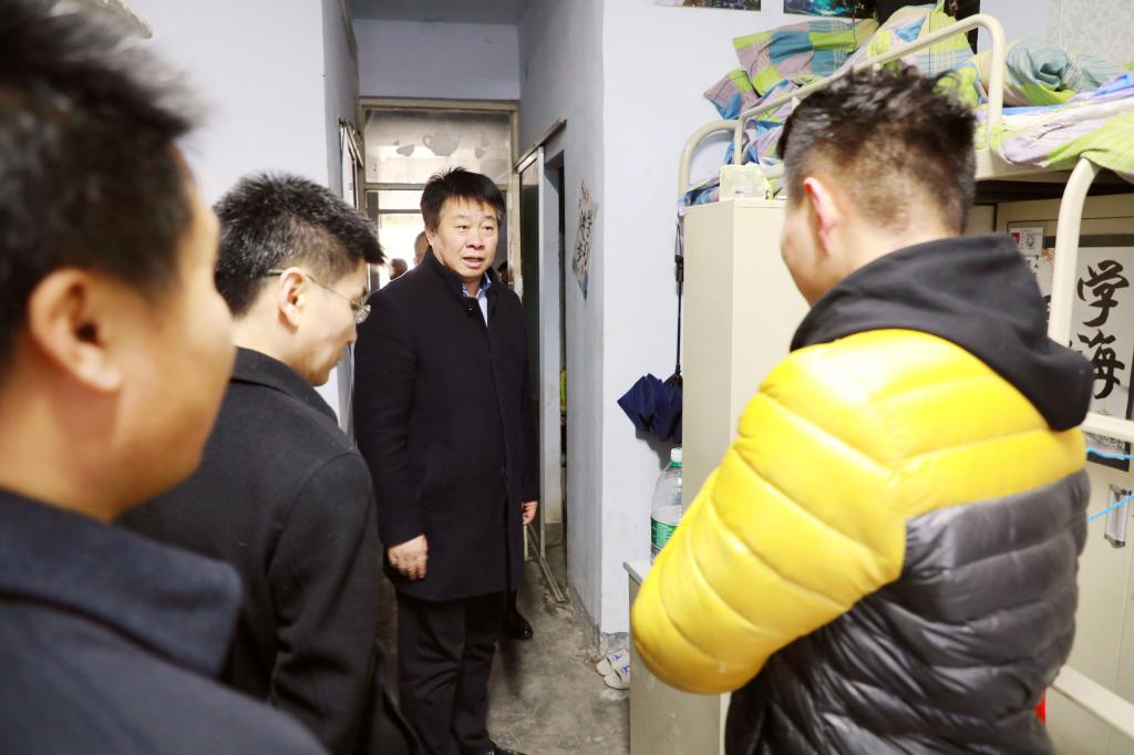 在教学楼,重点查看了多媒体教室、教师休息室和考研教室,要求切实强化配套设施建设和教学设施管理维护,确保教学活动正常开展;在各系(部),详细了解了开学准备和师生报到情况,询问了教学准备和科研工作情况,要求各系(部)鼓足干劲,提振精神抓落实,以饱满的精神状态投入到新学期教育教学工作中来;在学生宿舍,查看了宿舍改造工程、管理服务、设施运行、卫生消毒消杀和安全隐患排查情况,要求相关部门切实做好各项工作,全面排查安全隐患,为同学们提供温馨、安全、和谐的住宿环境;在餐厅,详细查看了食材来源和备案登记情况,重点强调了食品卫生和饮食安全,要求有关部门加强源头管理,紧把安全关口,务必确保食品安全卫生;在图书馆,深入了解了管理服务和图书利用情况,要求加强调查研究,不断提升管理水平和服务质量,切实将图书“用起来,读起来”。