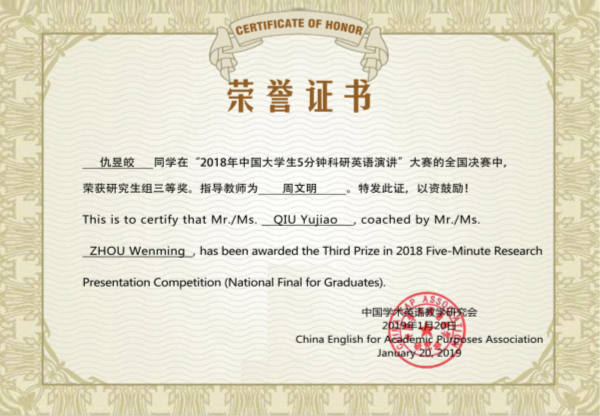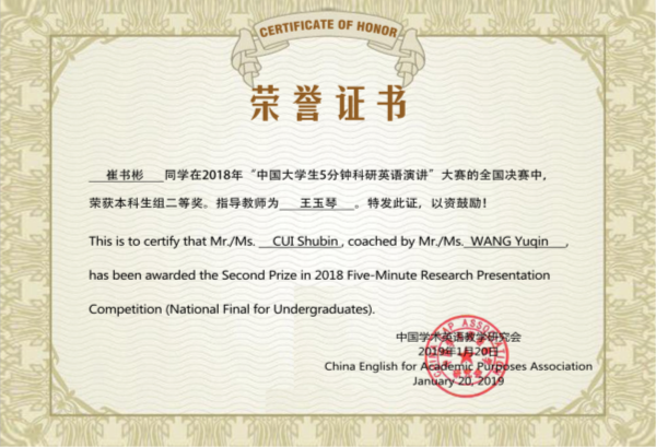 近日,由中国学术英语教学研究会主办的首届“中国大学生5分钟科研英语演讲”大赛圆满落幕。伟德官网信息与控制工程学院计算151班崔书彬提交的作品“The Test of Computer Software”( 软件测试方法)获本科生组全国二等奖,指导教师为王玉琴;机械与汽车工程学院2017级硕士研究生仇昱皎提交的“Optimized Design of Automatic Reset Exhaust Smoke Damper”(自动复位排烟防火阀的优化设计)获研究生组全国三等奖,指导教师为周文明。