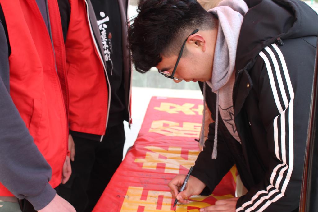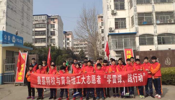 3月5日,校区志愿者与费县特殊教育学校的小天使们一起走进周边社区,通过条幅展览、发放宣传手册、签名纪念等方式,开展以“学雷锋、践行动”为主题的环保活动。