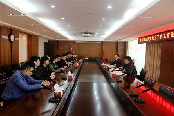 为全面评价在青高校服务青岛经济社会发展的贡献度,支持和引导在青高校提升服务青岛发展的能力,有效促进校地融合发展、互动共赢,3月12日上午,青岛市委教育工委工作组到校进行调研。青岛市委教育工委(教育局)高教处副处长晁永强一行3人与学校相关部门和单位负责同志座谈,党委常委、副校长齐德义出席会议,校长办公室副主任王雄主持会议。