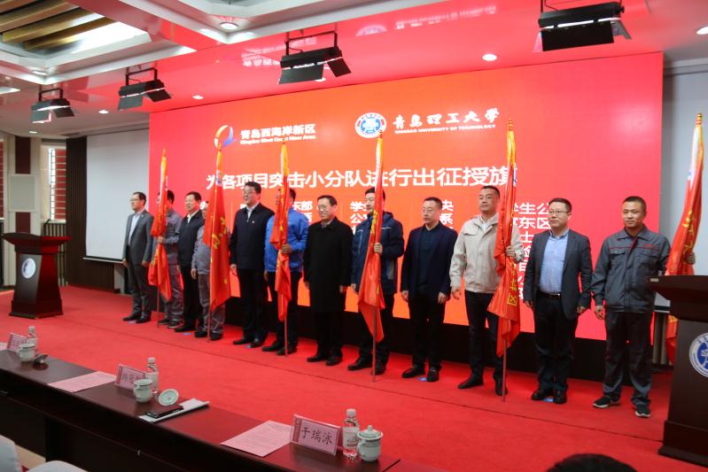 校党委书记王亚军,校长谭秀森,青岛西海岸新区政府党组成员,区高校引建工作领导小组常务副组长、办公室主任,区招才引智突击队、高校引建分队队长韩冠智,青岛经济技术开发区工委委员、管委副主任高嵘,区委教育工委常务副书记、区教育和体育局局长于瑞泳,城发投资集团有限公司党委书记、董事长贾强,城发投资集团有限公司党委副书记、总裁,伟德国际1946bv官网新校区项目突击分队分队长包振宇出席出征仪式。伟德国际1946bv官网其他领导班子同志、各职能部门、学院党政负责人、师生代表,城发投资集团有限公司有关领导同志,以及监理、设计单位负责人,各项目突击小分队有关同志参加出征仪式。副校长齐德义主持仪式。