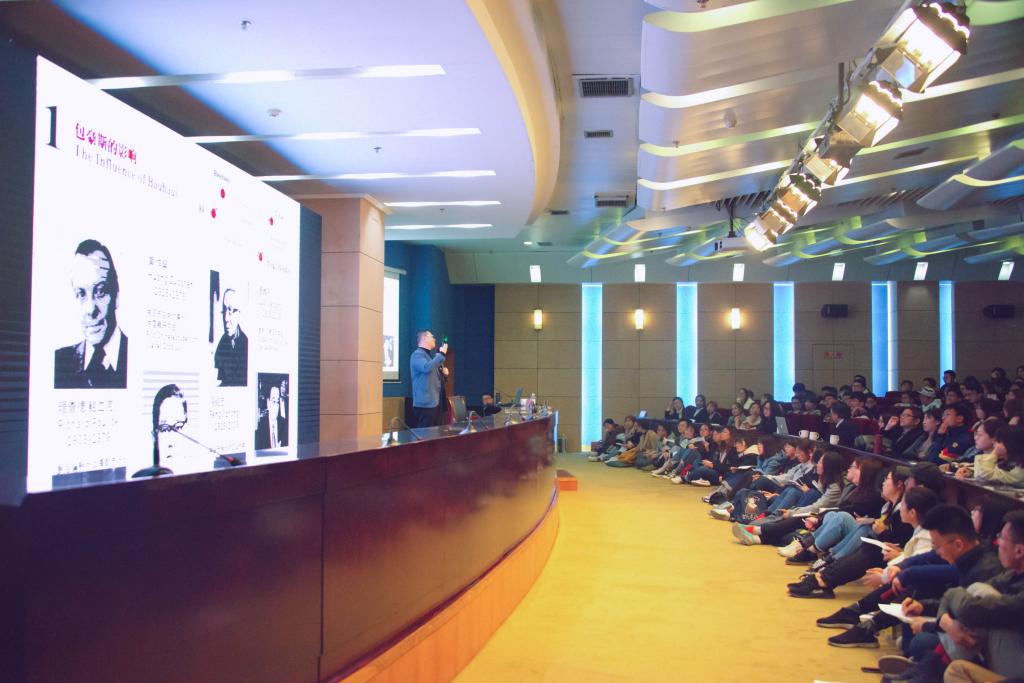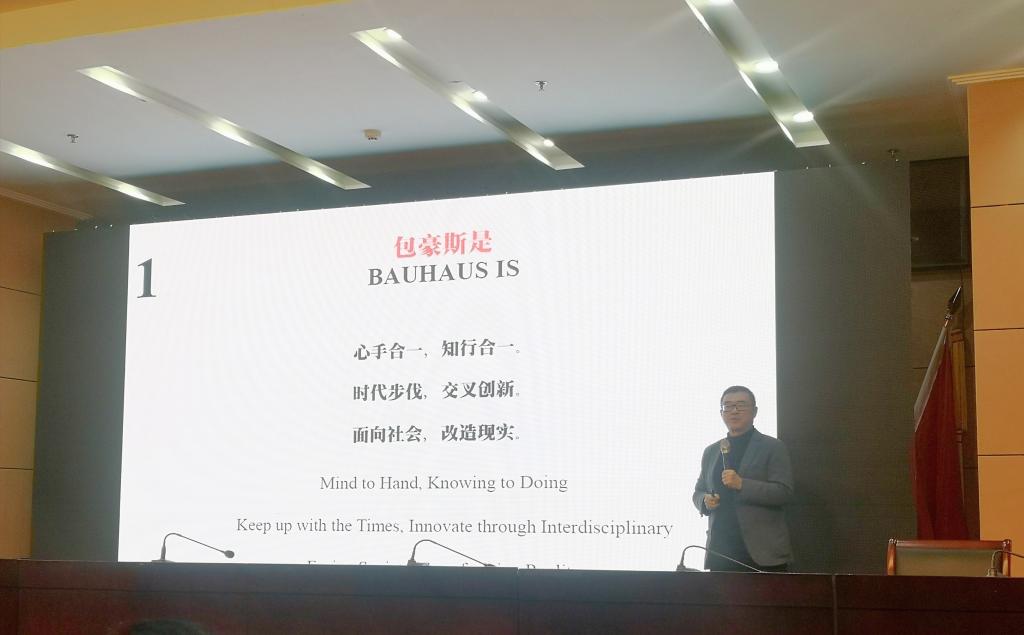 讲座开始之初,李振宇用诙谐的语言风格,在现场营造出了良好的交流氛围。李振宇首先向同学们介绍了包豪斯的历史,为同学们深刻且新颖解读了包豪斯的定义。在包豪斯精神的解读中,李振宇提出了“心手合一,知行合一;时代步伐,交叉创新;面向社会,改造现实”的创新理解,并与当代建筑设计理念相结合,帮助同学们认识了“包豪斯”这一艺术风格。其次,李振宇介绍了包豪斯对同济大学教学楼及当代建筑大师风格的影响,用生动的例子着重强调了同济大学对于“包豪斯”风格交流传播所做出的贡献。