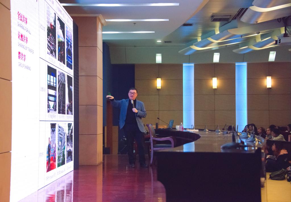 随后,李振宇借助“共享建筑”这一思想,将主题从包豪斯转向超豪斯。通过列举从古至今关于共享建筑的实例全面、深刻分析了“共享”这一新思路对于建筑设计的重要意义,向同学们传达了他对“共享”的积极看法。李振宇强调,建筑师的设计理念应适应时代的信息化变革,为同学们以后的设计提供平了新思路。最后,李振宇结合自己成功的设计案例向同学们分享怎样将设计结合共享,更好的让建筑服务于社会,使同学们获益匪浅。