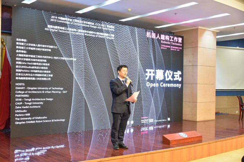 4月12日下午,由伟德官网滨海人居学术创新中心、建筑与城乡规划学院联合主办、青岛沿海建筑设计有限公司支持的2019第四届机器人建构国际工作营开幕式在市北校区学术报告厅举行。
