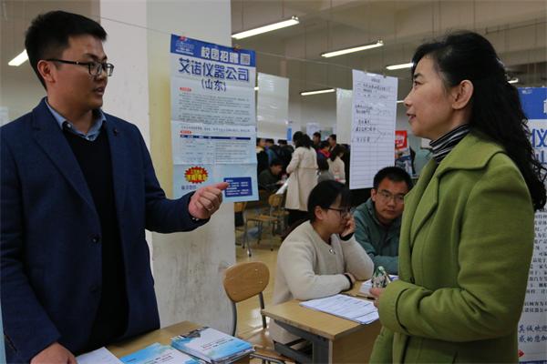 此次双选会为学生提供了与用人企业深入沟通交流的机会,许多已考研成功和顺利签约的学生也都来到了招聘会现场,与用人单位就未来的职业规划进行了咨询和交流,来自材料成型及控制工程专业的刘伟在招聘会现场提到:“虽然我已经成功保研山东大学,但深造完成后还是要走向职场,今天的专场招聘整合了多家专业相关的招聘企业,这对我确定就业方向和做好职业规划提供了很好的学习机会。”
