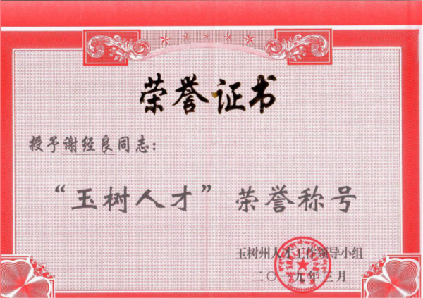 谢经良博士2017年受学校委派参加中组部第17批博士服务团,挂职青海省玉树州环保局副局长,挂职期间在三江源生态环境保护、环境监测等方面做出卓有成效的贡献,由于工作成绩突出,为三江源生态环境保护工作继续提供技术支撑。2019年3月为表彰谢经良博士为玉树州所做的贡献,特授予“玉树人才”荣誉称号。(撰稿:张恬;审核:邵长飞)