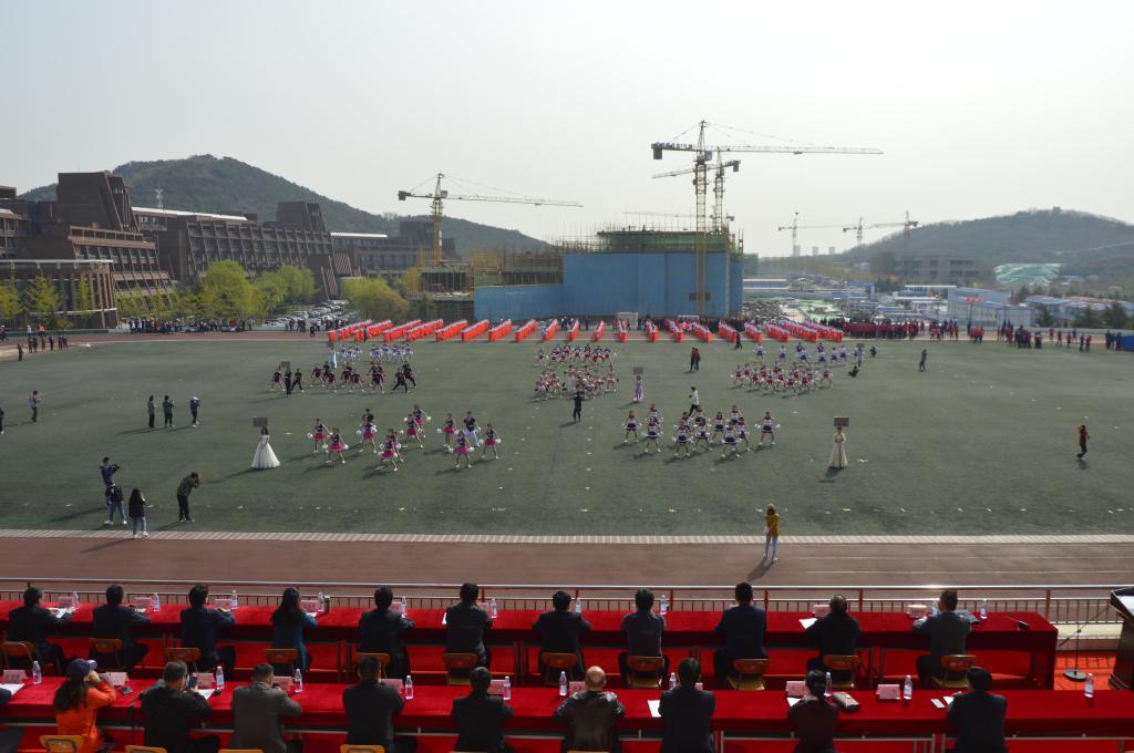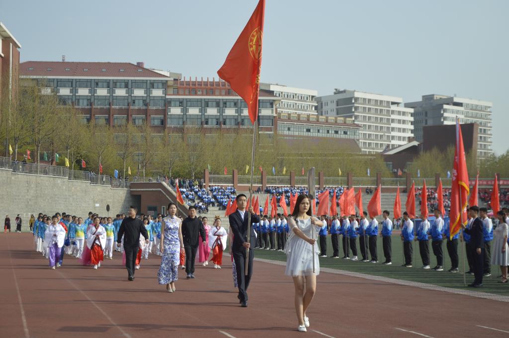 开幕式上,各学院学生方阵依次入场,精心设计了各具特色的标语,准备了振奋人心口号,同时辅以队形变化,充分体现了学院、专业特色,别开生面的入场式令现场充满了欢快的盛会气氛。随后,运动员、裁判员代表先后宣誓。表演项目中,青春激扬、活力四射的啦啦操表演充分展示了伟德官网学子积极拼搏、奋勇争先的精神风貌。大型团体操《我们都是追梦人》致敬即将在青岛举办的海军节,贴合时代主题,展现时代精神,是对中国人民为实现中华民族伟大复兴的中国梦拼搏奋斗的真情礼赞。各种艺术造型,动作舒展大方,美感十足,赢得广大师生赞誉。