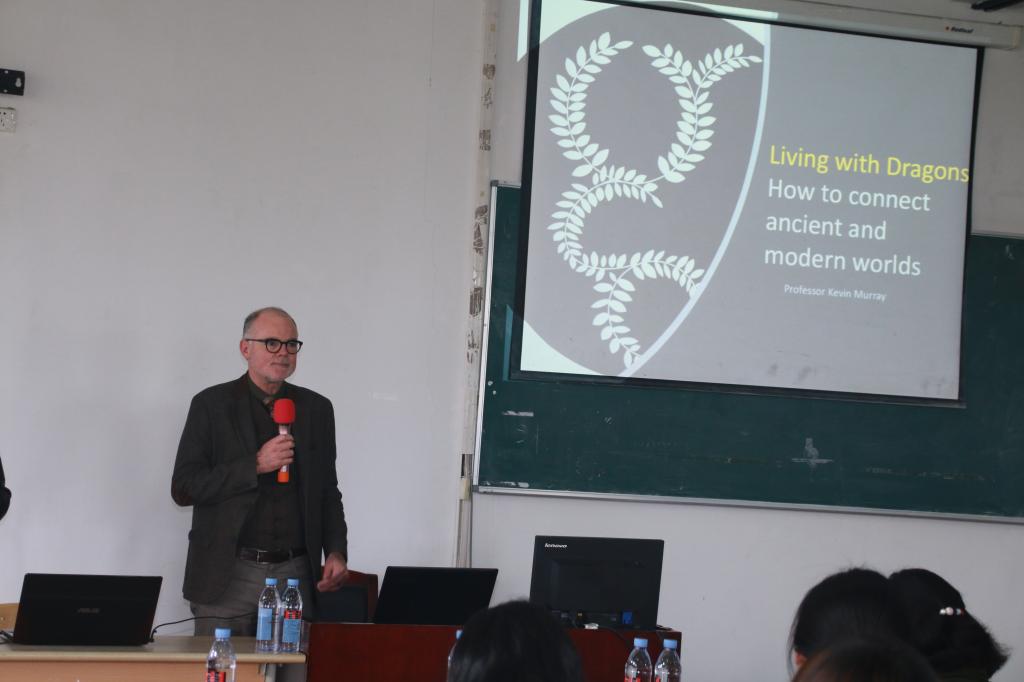 时隔一年再次来到伟德官网的Murray教授高度赞扬了学生们的优秀创作和创新思考,与大家一起逐一观赏了同学们的作品,表达了进一步与中国、与伟德官网结缘的美好愿景,并以“怎样将传统龙文化融入当代设计”为主题为学院师生做精彩学术讲座。Murray教授通过 “龙文化如何适应于今天的世界”、“在国外设计中对龙文化的应用”、“为什么龙如此受欢迎”、“在现代设计中龙扮演什么角色”四大问题,深度解析了龙文化在东西方设计中存在的异同之处,表达了通过这一主题来促进国际艺术交流的重要意义;与同学们分享了自身的设计实践经历及教学体验,就如何实现传统文化在当代设计中的继承与创新,更好的读懂设计中的功能主义展开了生动深入的阐释。讲座结束后,同学们就设计的思考和问题与Murray教授进行了积极的交流。