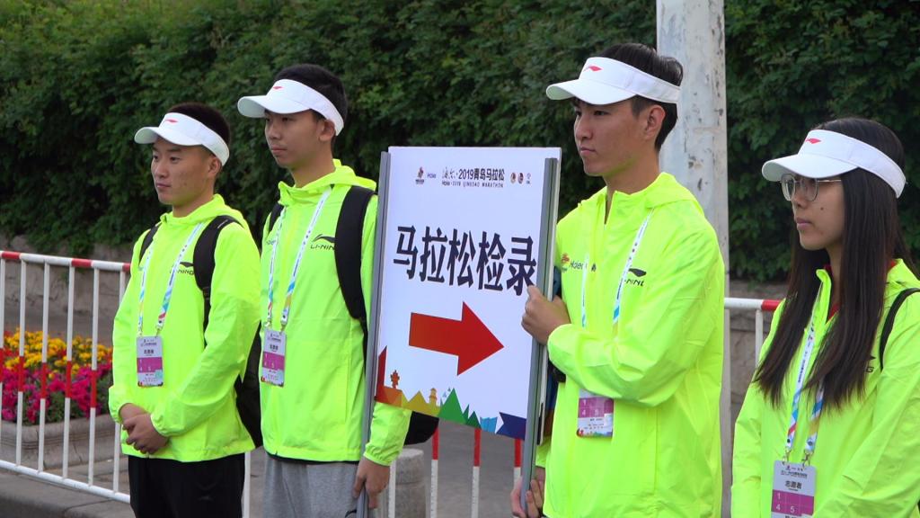 伟德官网学生圆满完成2019青岛国际马拉松志愿服务