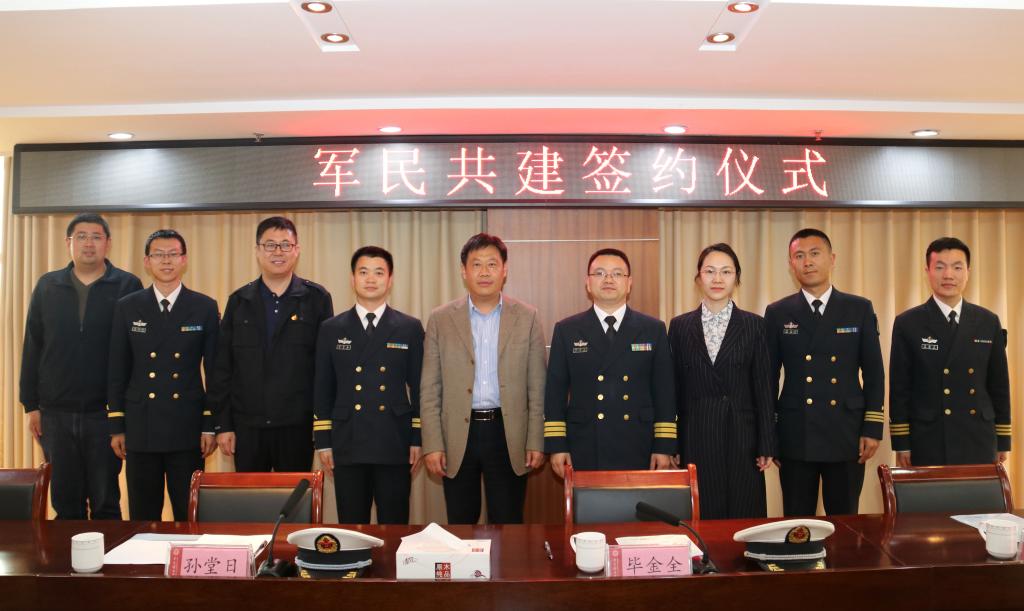 91033部队政治委员毕金全与副校长王伟签署了共建协议书。91033部队副参谋长徐智伟、部队管理组长孙堂日、宣传组长朱西程、组织纪检组长翟源青,学校武装部、团委相关负责同志共同参加。签约仪式由学校武装部部长钱均主持。