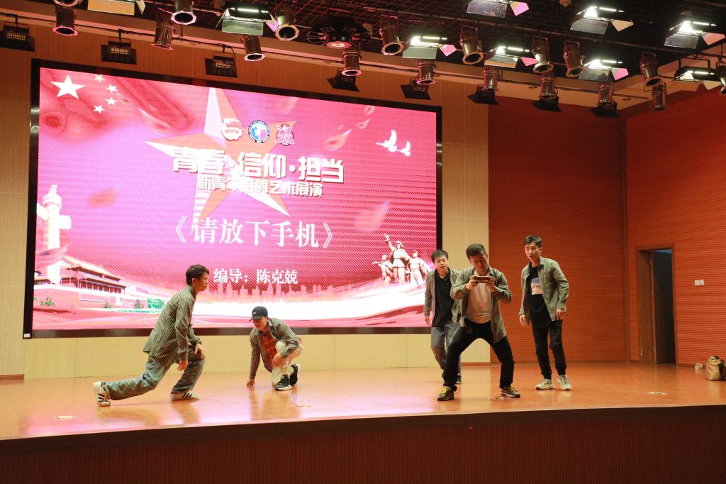 由中国舞蹈家协会山东联盟举办的“青春 · 信仰 · 担当”新青年街舞艺术展演于5月16日晚在图书馆报告厅举行。共青团山东省委副书记李梦遥,共青团临沂市委书记万明国,共青团山东省委维护青少年权益和社会联络部副部长张子涵,共青团临沂市委副书记马允超、副调研员王伟,费县挂职县委副书记侯继东,临沂校区党委常务副书记李国涛等领导出席活动,中国舞蹈家协会街舞委员会常务副主任、秘书长夏锐出席并指导展演,在校师生600余人观看了此次展演。