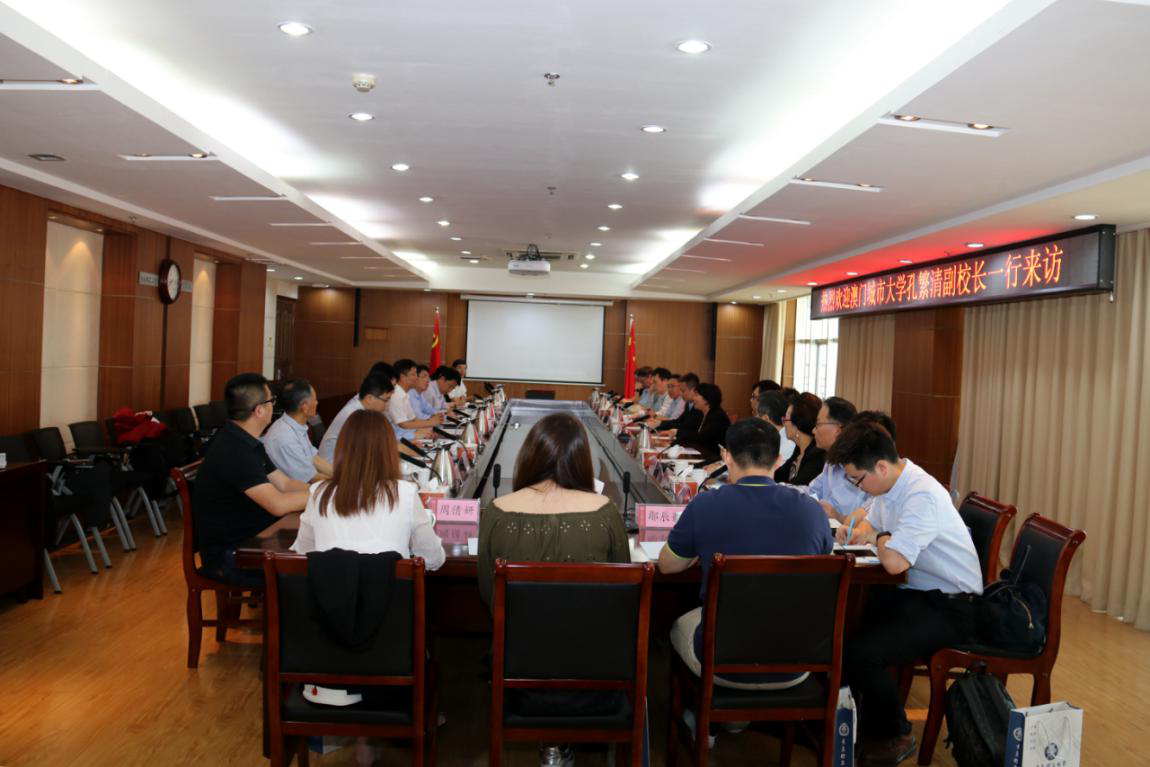 5月22-23日,澳门城市大学副校长孔繁清,中联办高校处处长洪波,澳门城市大学各教学院部、各行政部门相关负责人等一行18人来访伟德官网。23日上午,双方座谈会在市北校区图书科技楼召开。校长谭秀森接见孔繁清一行并亲切会谈。副校长于德湖,统战部部长王维,校长办公室、研究生处、教务处、学生处、建筑与城乡规划学院、商学院、信息与控制学院、艺术与设计学院、港澳台事务办公室等院部负责人参加座谈会。座谈会由副校长于德湖主持。