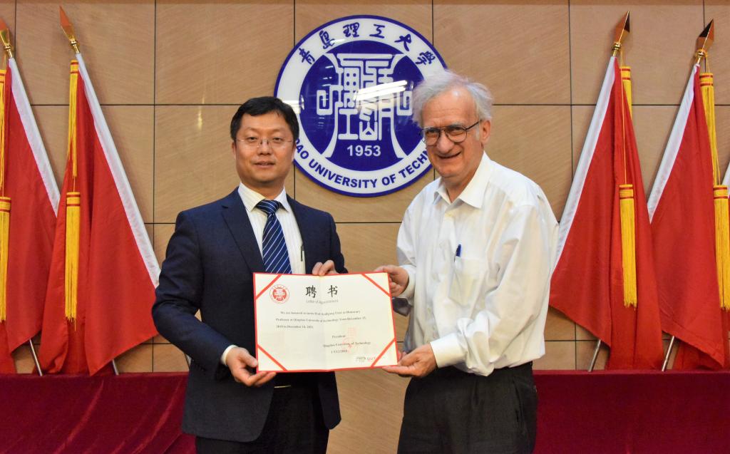 讲座开始前,党委常委、副校长于德湖为菲斯特教授颁发伟德国际1946bv官网客座教授聘任证书。