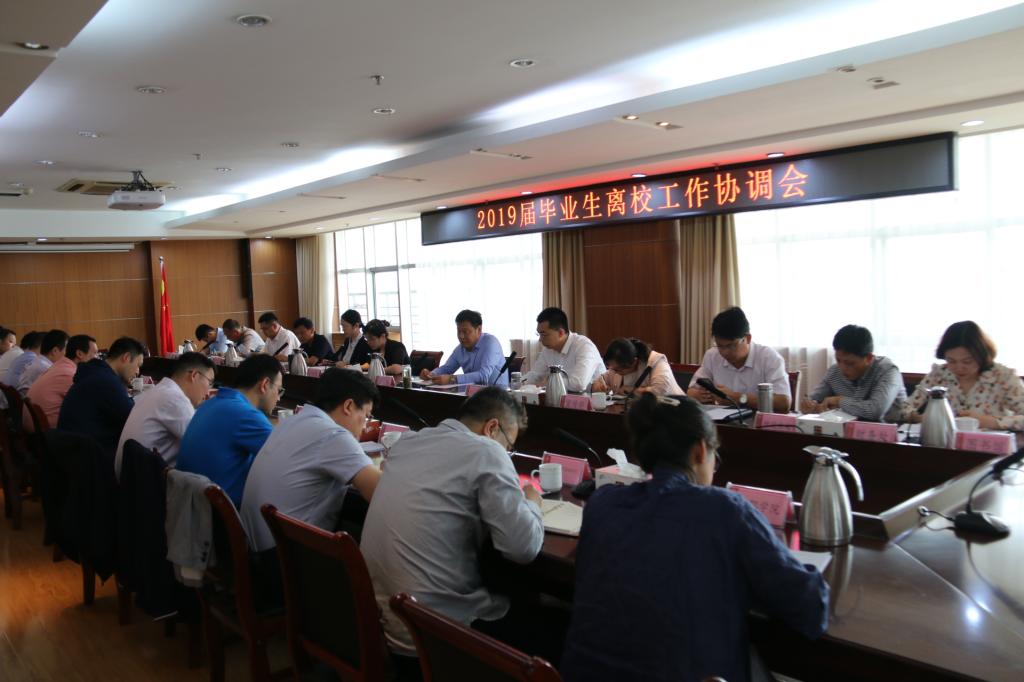 5月28日下午,学校在图书科技楼会议室召开2019届毕业生文明离校工作协调会,副校长王伟主持会议并讲话,相关职能部门负责人及各学院副书记参加会议。