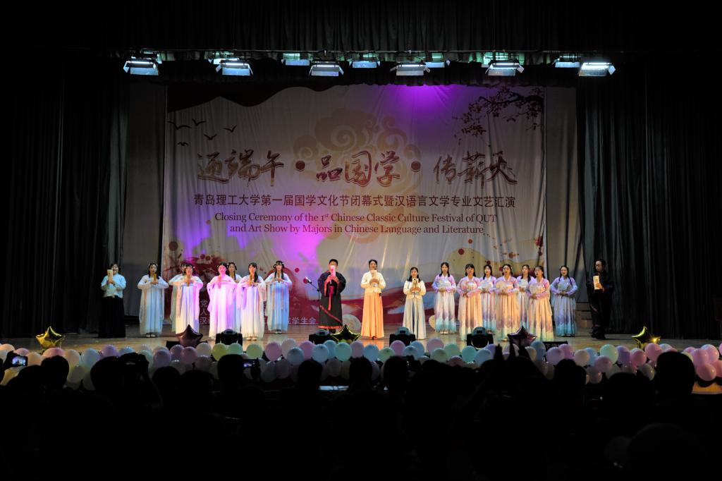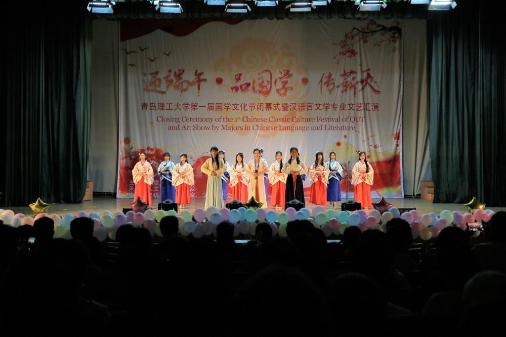 为弘扬优秀文化,扎根国学土壤,推动国学文化内涵式发展。5月29日晚,“迎端午·品国学·传薪火”首届国学文化节闭幕式暨汉语言文学专业汇报演出在科学会堂举行。本次活动由党委宣传部、团委主办,人文与外国语学院承办,汉语言文学教研室、学院学生会协办,人文与外国语学院党总支书记王新,院长巩湘红,副书记王振,副院长郭印、莫玉梅,兄弟学院学团负责人及滨海学院汉语国际教育专业师生应邀出席。